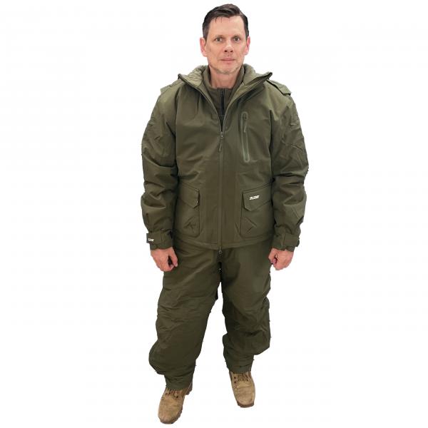 A SILSTAR Exclusive Line Thermo kétrészes thermo ruházat egy thermo kabátból és kantáros thermo nadrágból áll. A ruha felülete kényelmes, puha tapintású teljesen vízhatlan, víztaszító anyagból készült, amely NEM SURROG, NEM AD KI HANGOT mozgás közben, így nagyon alacsony a zajszintje, un. whisper(suttogó) karakterisztikájú, éppen ezért ideális választás VADÁSZATHOZ is. A puha belső borítás alatt vastag, meleg, bevarrt PVC bélés található, így az nem csúszik el. A ruházat alapanyaga 100% magas kopásállóságú twill peach mikroszálas poliészter, mely különlegesen magas vízállóságú, 8000/800 mvp DE mindezek mellett PVC bevonattal is el van látva és MINDEN VARRATA RAGASZTOTT IS, ami által - A RUHA TELJESEN VÍZ-ESŐ-SZÉLÁLLÓ! A kabát külső részén 3 db vízmentesen zárható zseb található, belsejében 1 db nagy zárható és 1db óriási méretű hálós zseb fokozzák a kényelmi és prakikus funkciókat. A kabát gallérja magas, jól véd a szél ellen. A kapucninak szintén van gallérja, mely tépőzáras így dupla védelmet biztosít. A kabát tépőzárral állítható mandzsettája is puha, meleg, bélelt. A kapucni levehető, jól védi a nyakat a széltől-esőtől, a fejet, de összezárt tépőzárral az állat sőt még szánkat is megvédi a hideg széltől. A kabát derékrészét rugalmas belső szalag tartja a testünk mellett, így nem fúj alá a szél. Az összes cipzár szél- és vízálló. A nadrágnak az összes varrata ragasztott, így az is 100%-ig víz-és szélálló. Alapanyagai, bélése, és minsd a külső mind a belső kiegészítőinek alapanyagai megegyeznek a kabátéval. A nadrágon 2db külső és 1db belső zseb van. A nadrág dereka rugalmas szalaggal,maga a nadrág kantárral van ellátva, hogy ne csússzon le. A nadrág szárát egy kb.30cm hosszú tépőzáras szalaggal húzhatjuk össze, így a bakancsra könnyű ráigazítani.